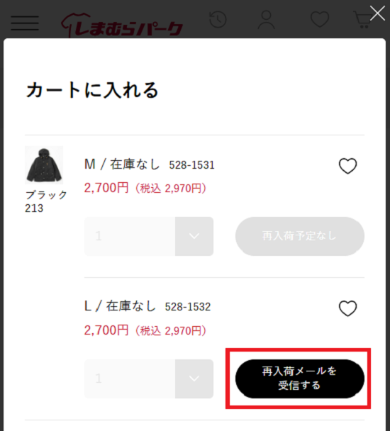- 検索すると「お探しの商品は、在庫をお調べする事ができません。」と表示されます。