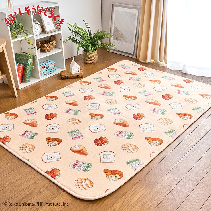 「おいしそうなしろくま」より、ルームマットが登場です!しろくまとパンの組み合わせの総柄がお部屋を可愛くしてくれます♪