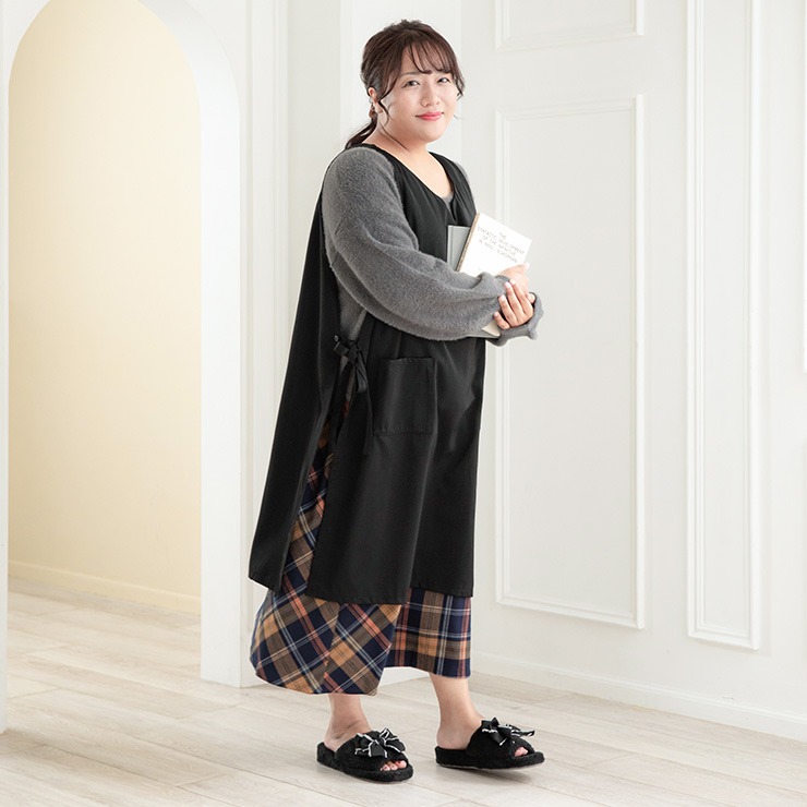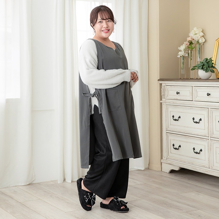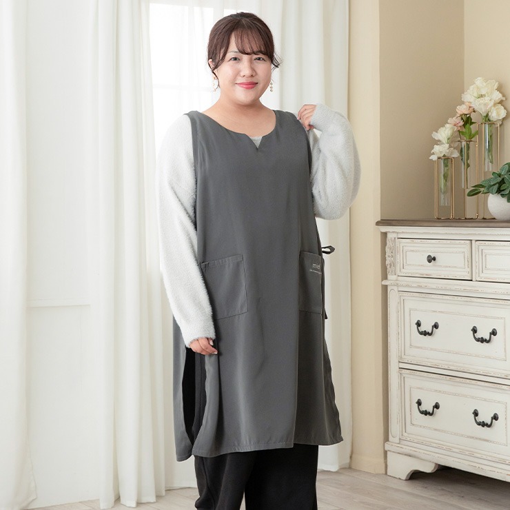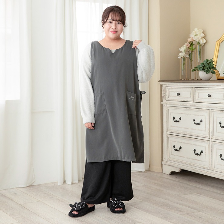 ゆったりサイズが嬉しい、サイドリボンの大人可愛いエプロンです。