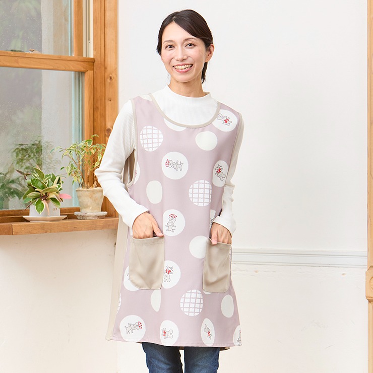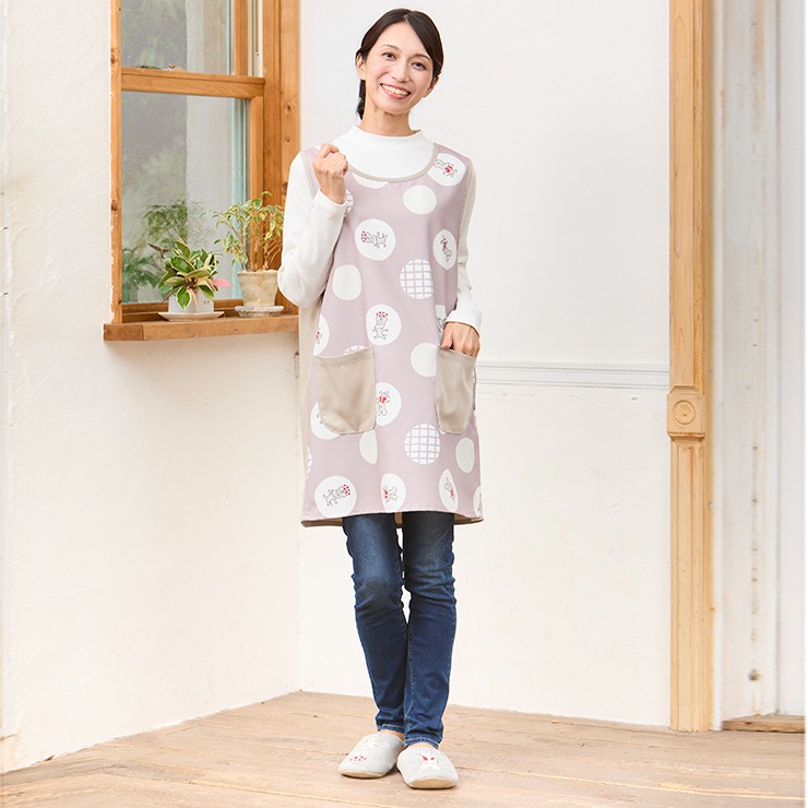 「ねずみくんのチョッキ」より、エプロンが登場です!ねずみくんとねみちゃんの総柄が可愛らしいデザインのエプロンです♪
