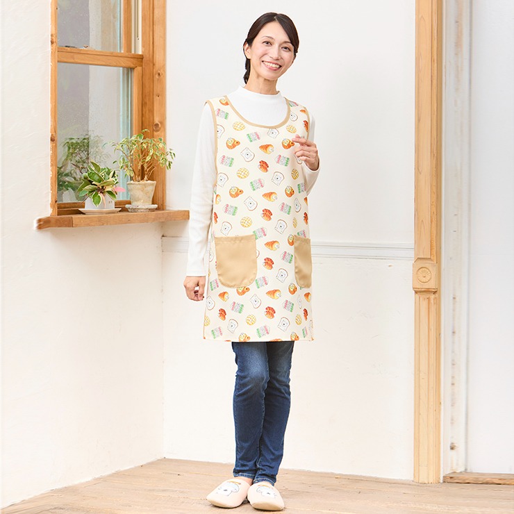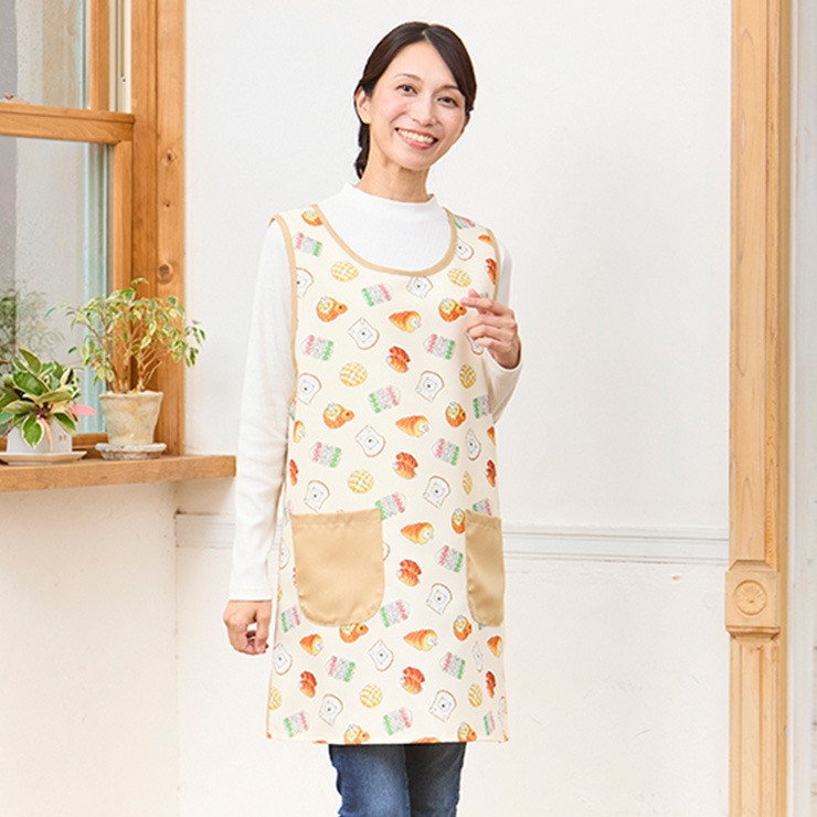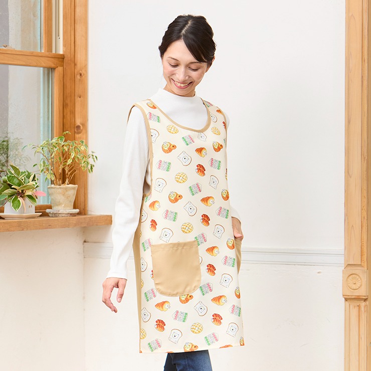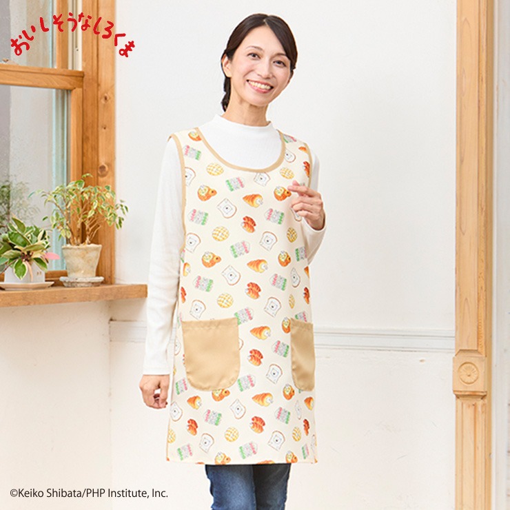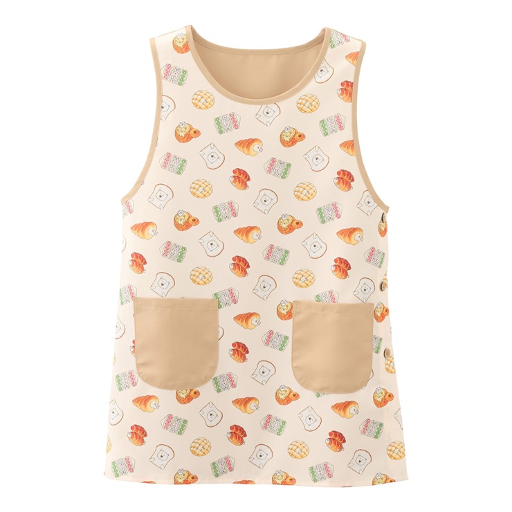 「おいしそうなしろくま」より、エプロンが登場です!しろくまとパンの総柄が可愛らしいデザインのエプロンです♪