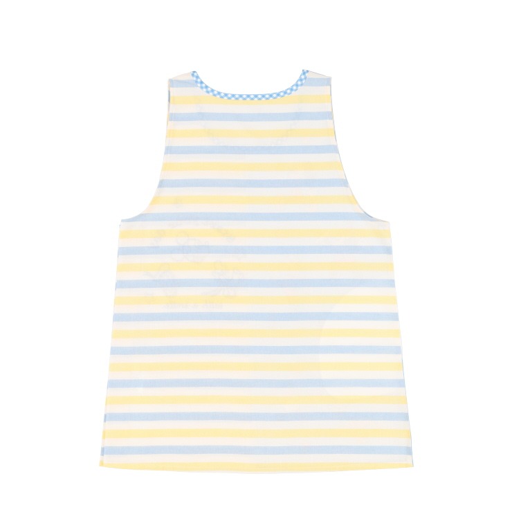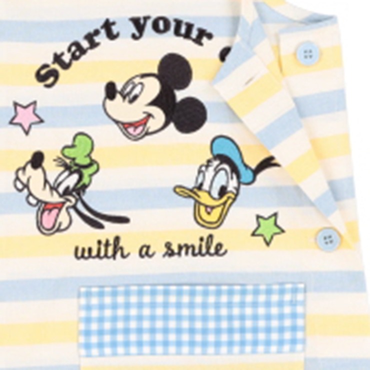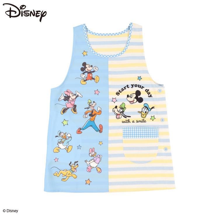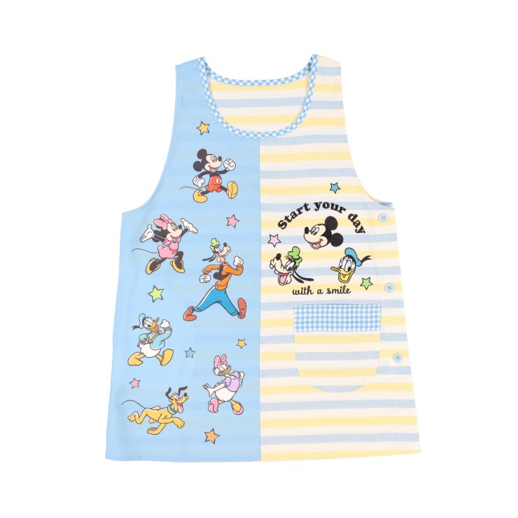 「ミッキー&フレンズ」デザインのエプロンです。真ん中切り替えが特徴的なデザインです。