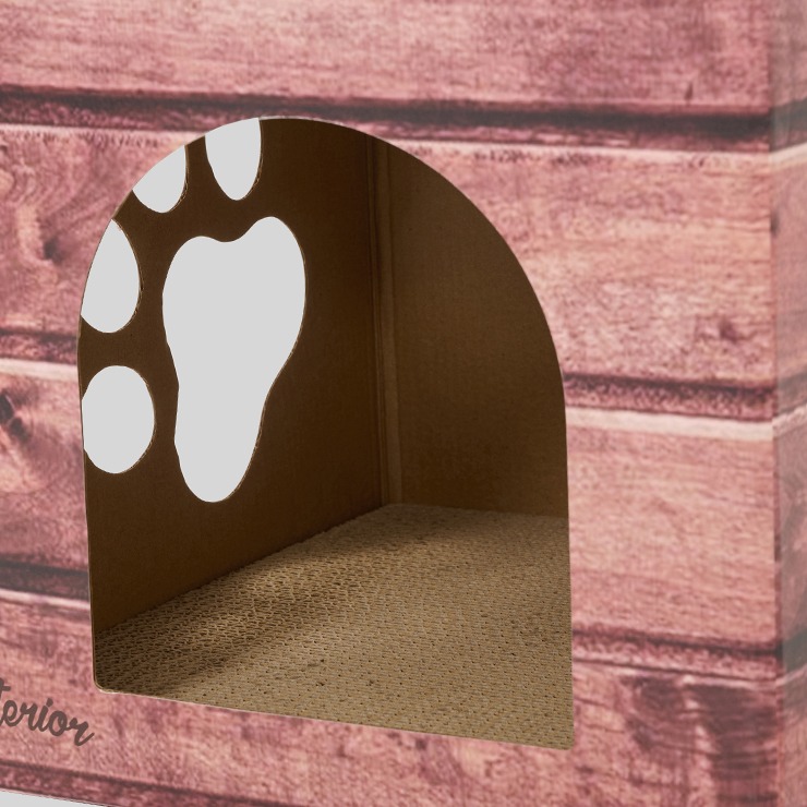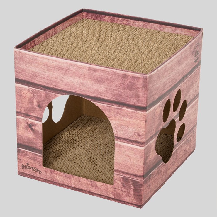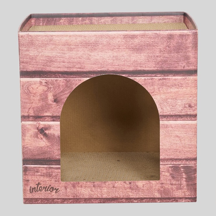 お部屋にもなじみやすい、木目調の爪とぎハウスです。
