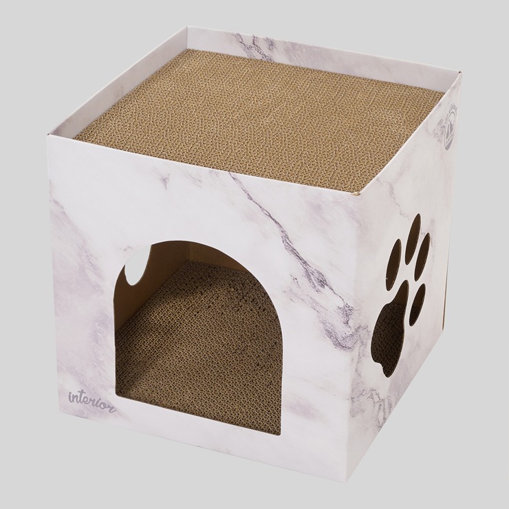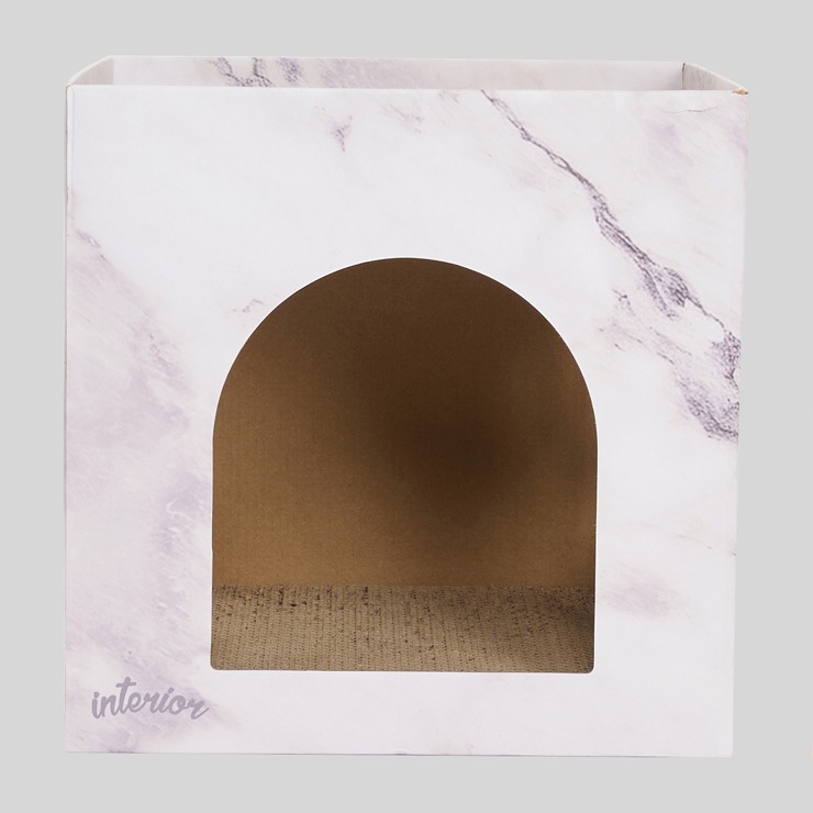お部屋にもなじみやすい、マーブル調の爪とぎハウスです。