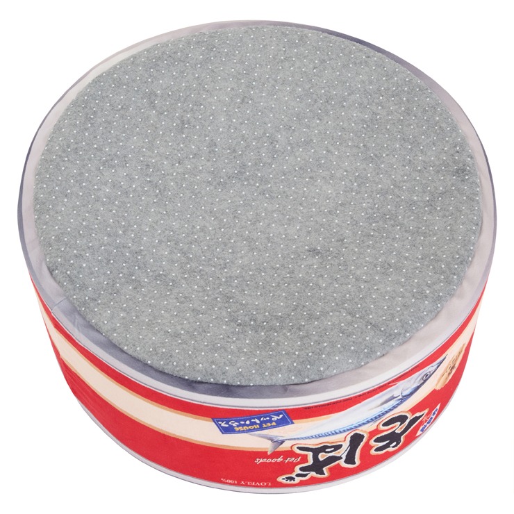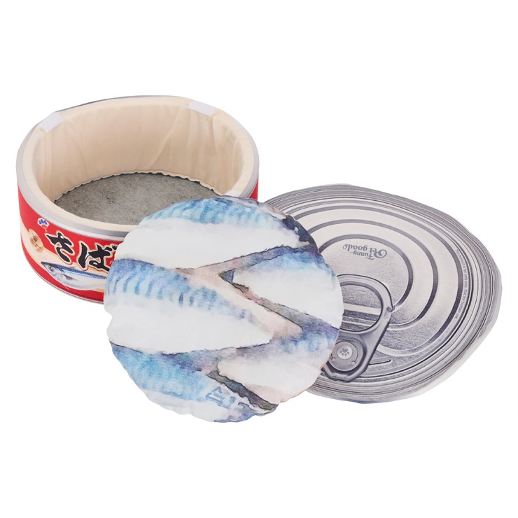 サバ缶型のペットソファー登場!蓋付きで、ふわふわのソファーです♪