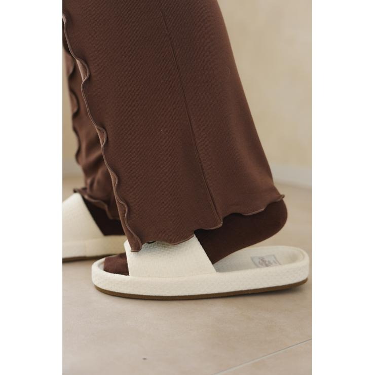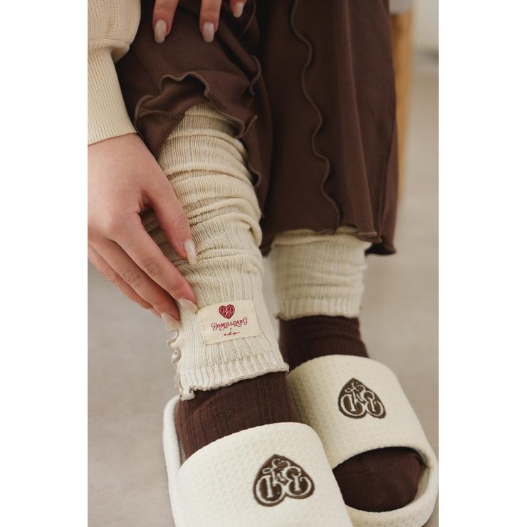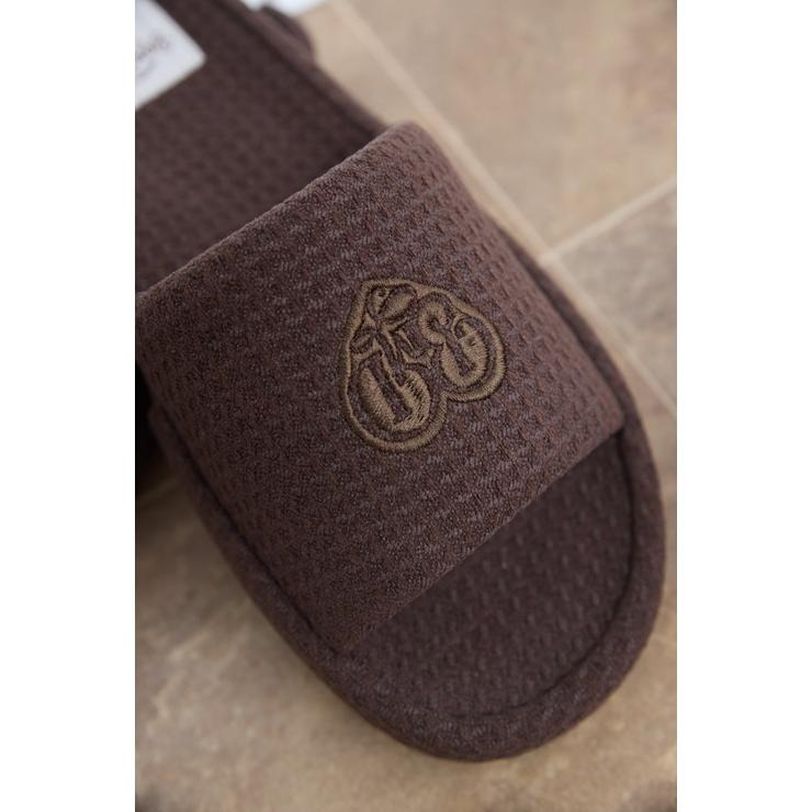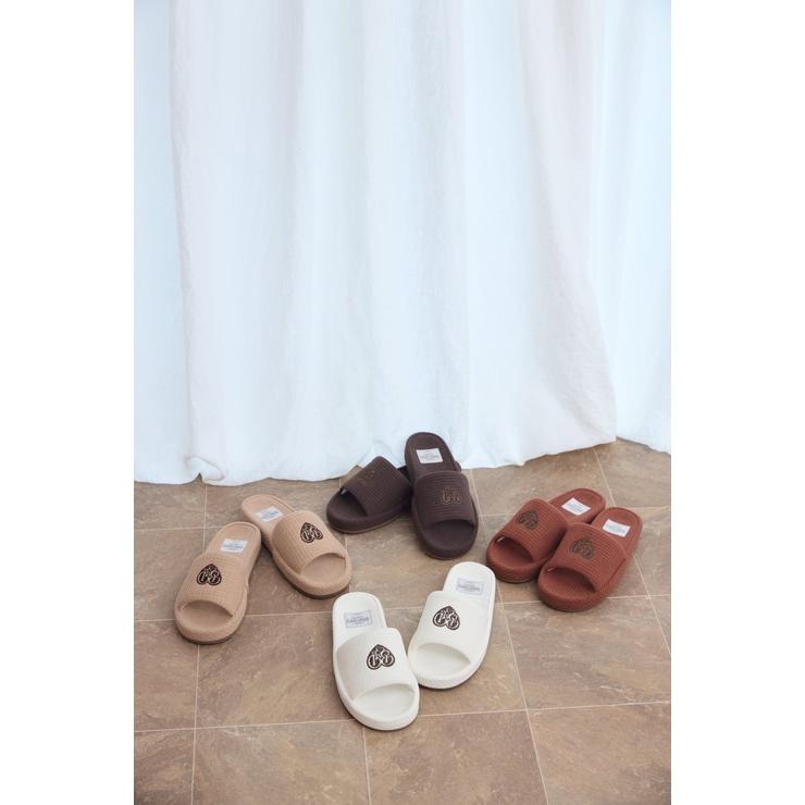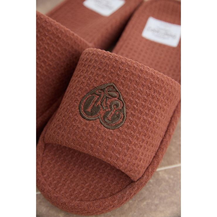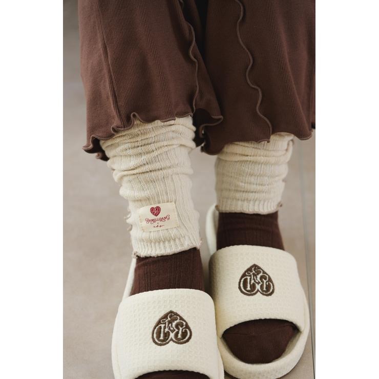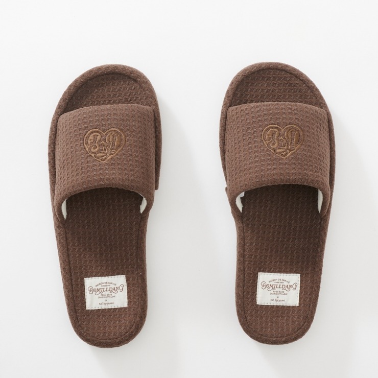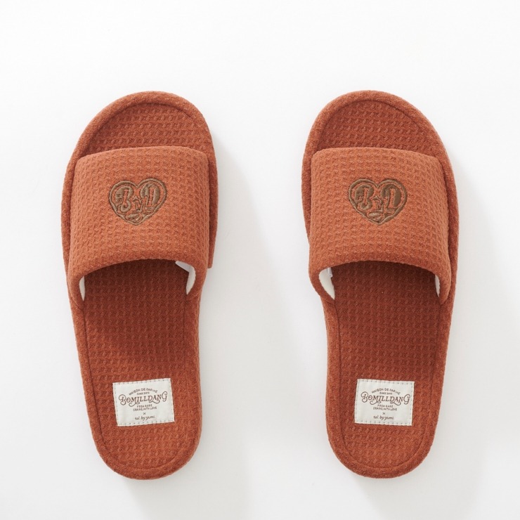 ワッフル風素材を使用した、心地よい肌ざわりのスリッパです。インテリアに馴染む、ナチュラルで優しいカラー展開。ハートのロゴの刺繍と、足元がすっきり見えるシルエットがポイント。