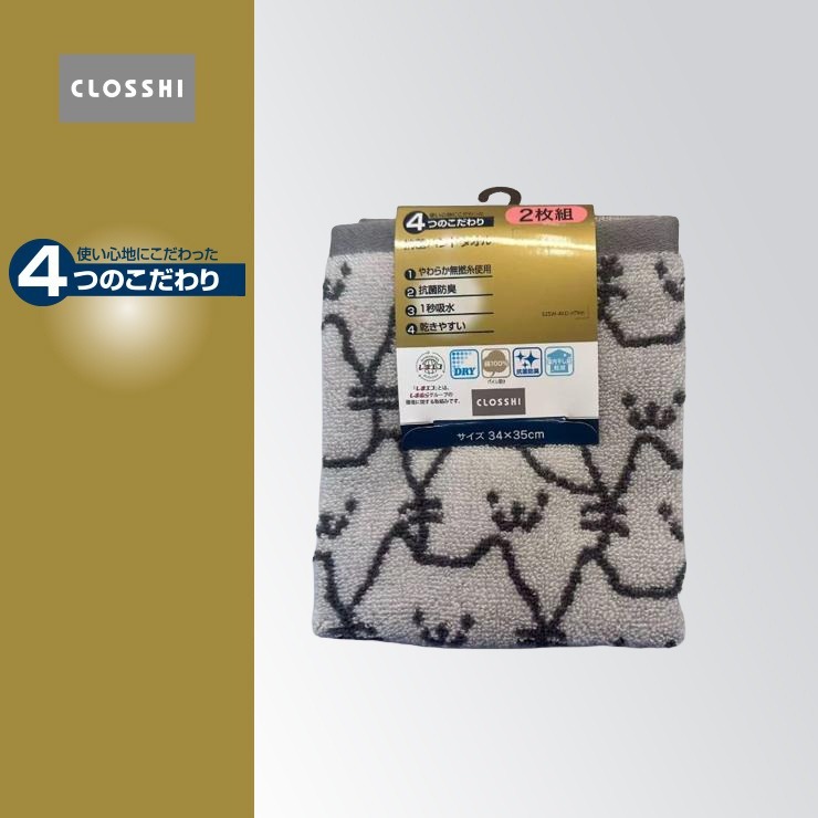 2枚組ハンドタオル(4つのこだわり・猫)