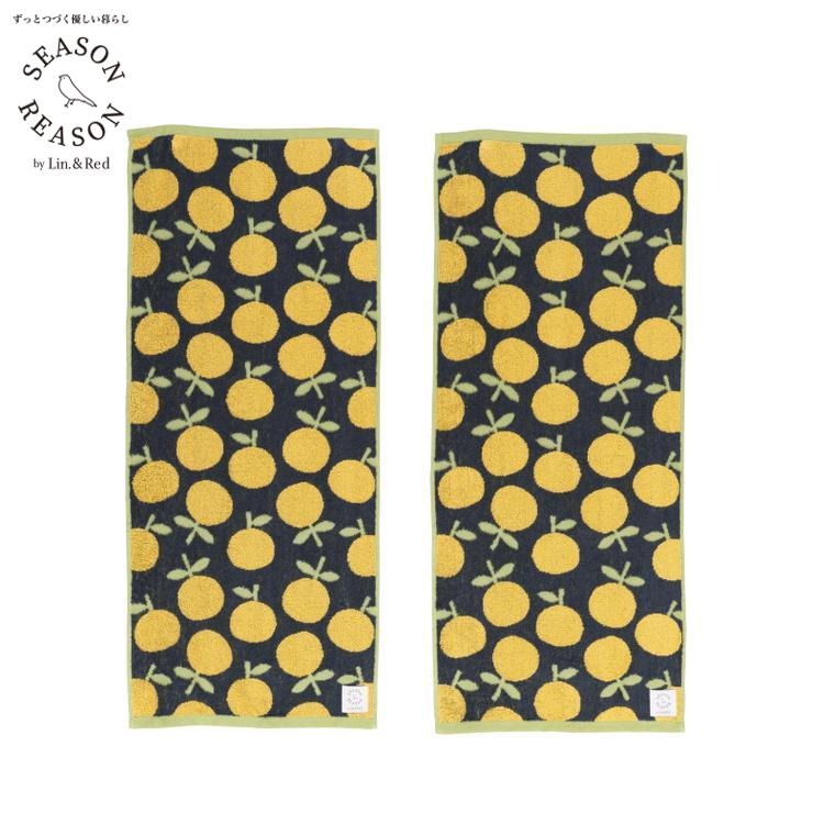 2枚組フェイスタオル(SEASON REASON) みかん柄