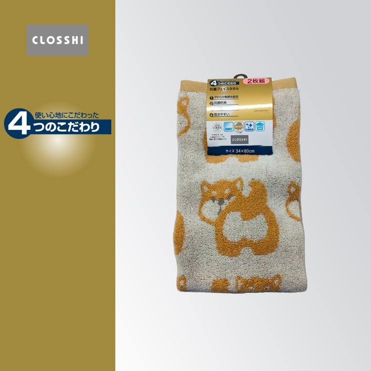 2枚組フェイスタオル(4つのこだわり・柴犬)