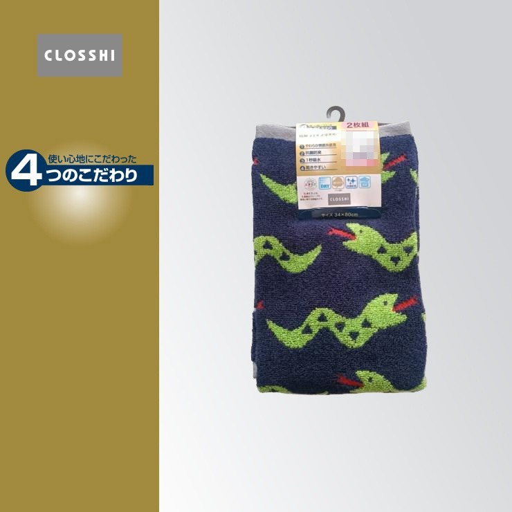2枚組フェイスタオル(4つのこだわり・へび柄)