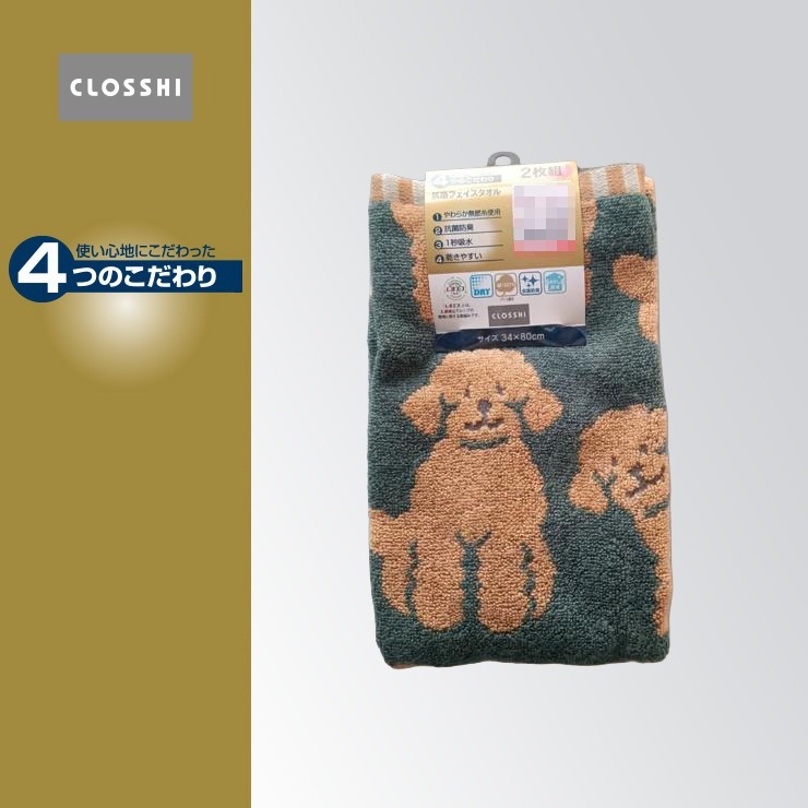 2枚組フェイスタオル(4つのこだわり・プードル)