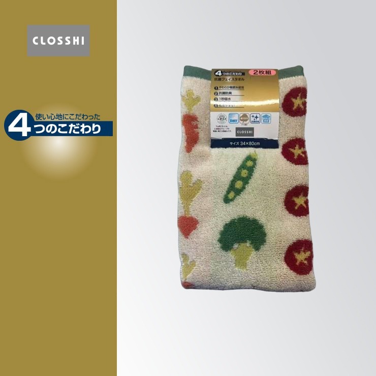 2枚組フェイスタオル(4つのこだわり・野菜)