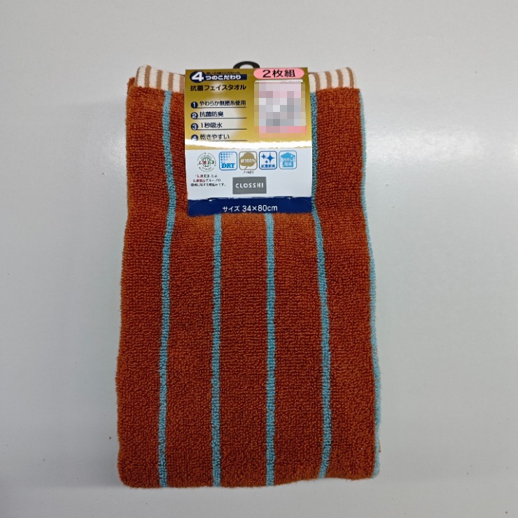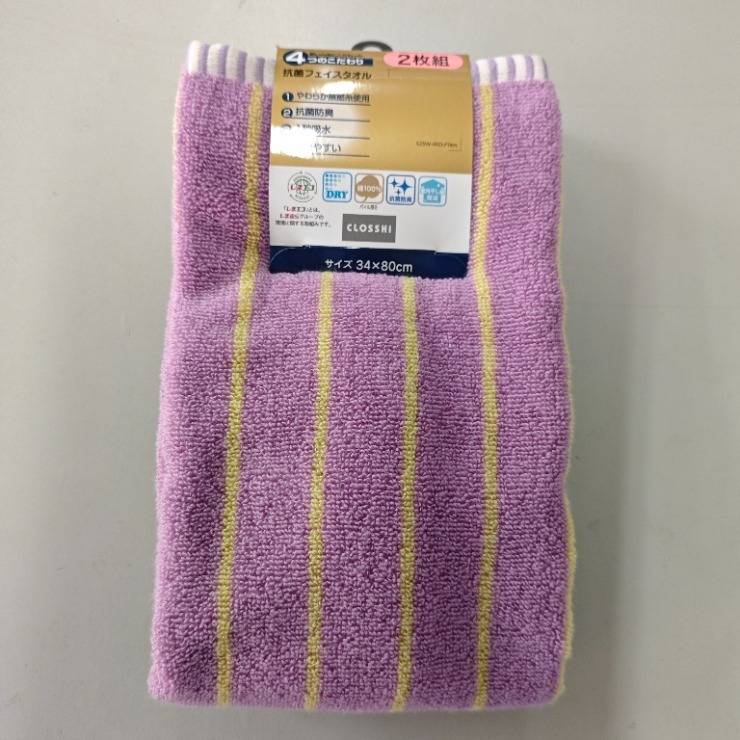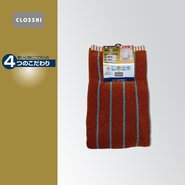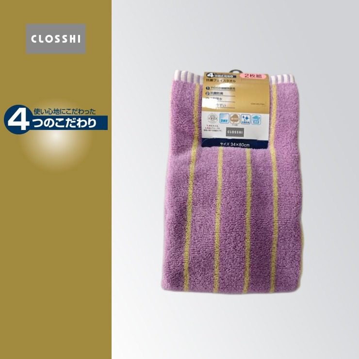 2枚組フェイスタオル(4つのこだわり・細ストライプ)