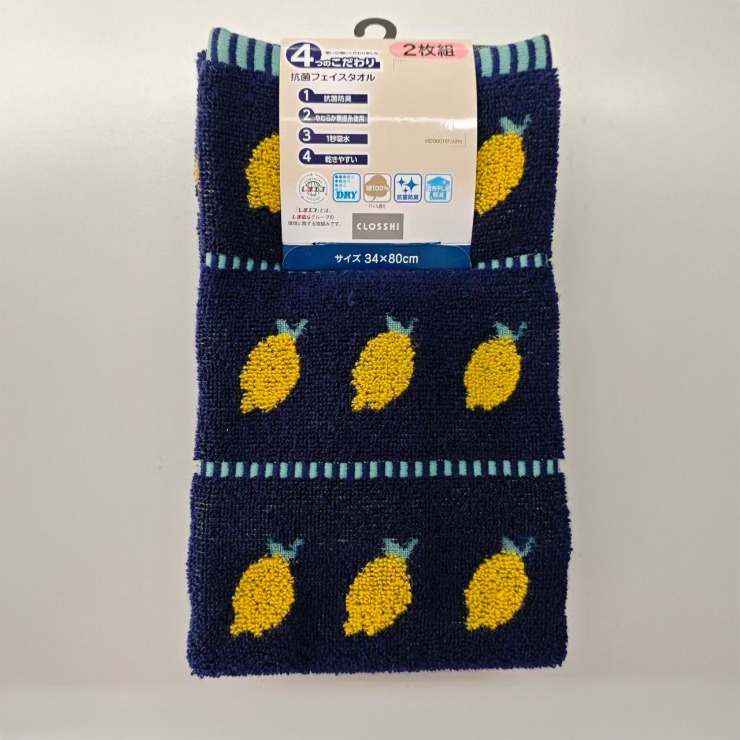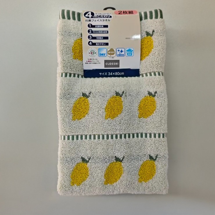 2枚組フェイスタオル(4つのこだわり・レモン)