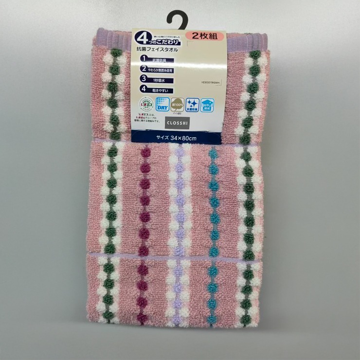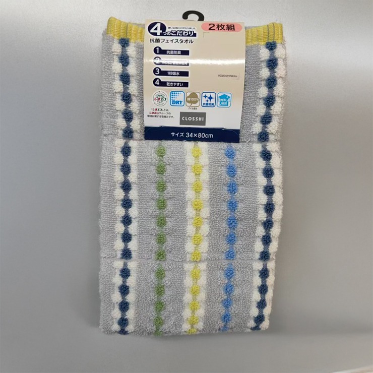 2枚組フェイスタオル(4つのこだわり・ストライプ)