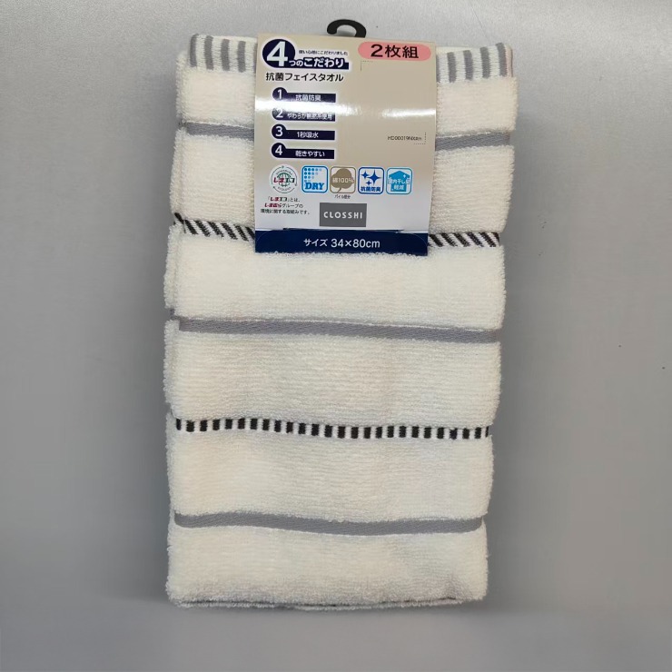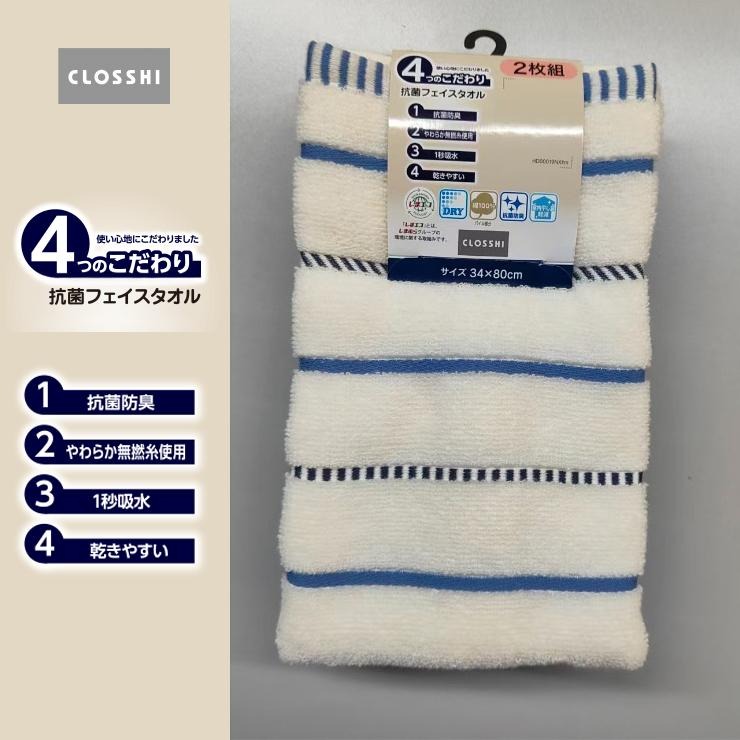 2枚組フェイスタオル(4つのこだわり・ボーダー)
