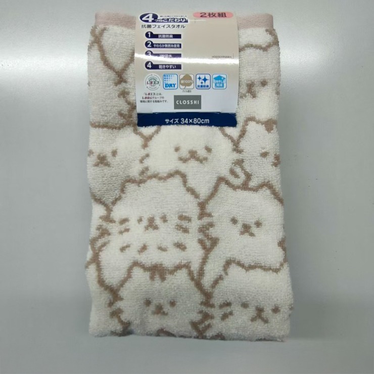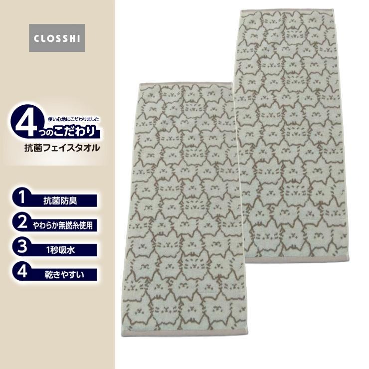 2枚組フェイスタオル(4つのこだわり・猫フェイス)