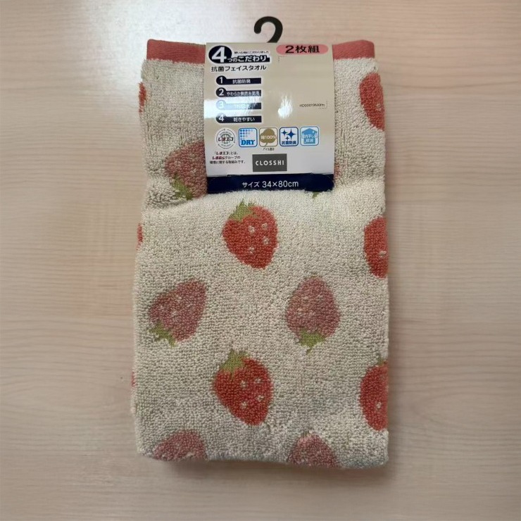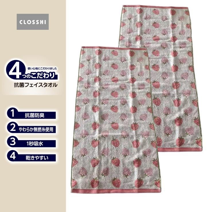 2枚組フェイスタオル(4つのこだわり・いちご)