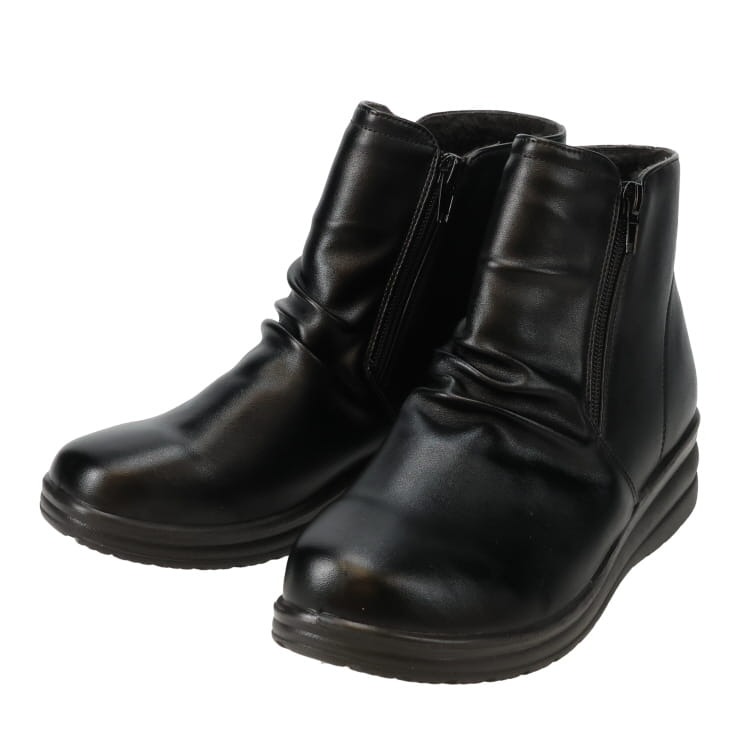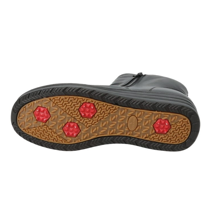 札幌の会社が本気で考えたブーツ。インソールは蓄熱保温材仕様でで温かく、抗菌防臭。水溶性防汚対応で汚れがつつきにくい。撥水加工、アウトソールには鉄ピンスパイク入りで氷結路面も滑りにくい。ファスナーが内側外側両面にあり履きやすく、シャーリングのデザインがポイント