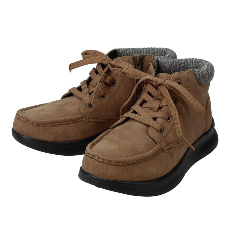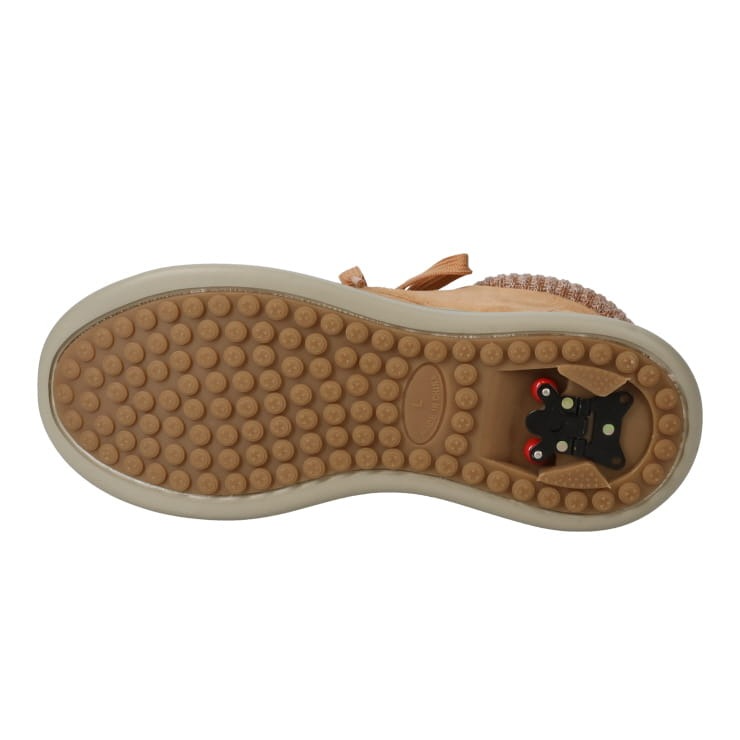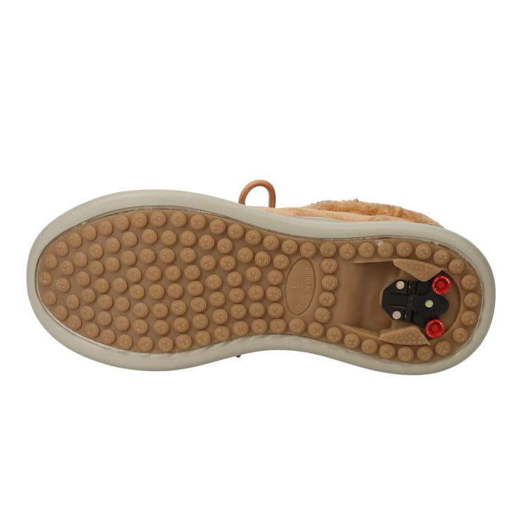 ワンタッチ式Wグリップスパイクで、いざという時はスパイクを出して氷雪路面と歩ける。4Cm4時間防水で安心。水溶性防汚、撥水対応、カップインソールで履きやすい。パットはニットで柔らかく足当たり良いです。デザインはボリュームあるモカなのでパンツにもあいます。内側ファスナーで履きやすい"