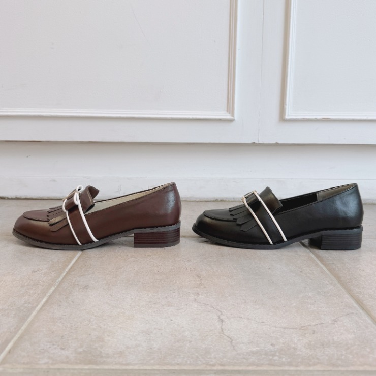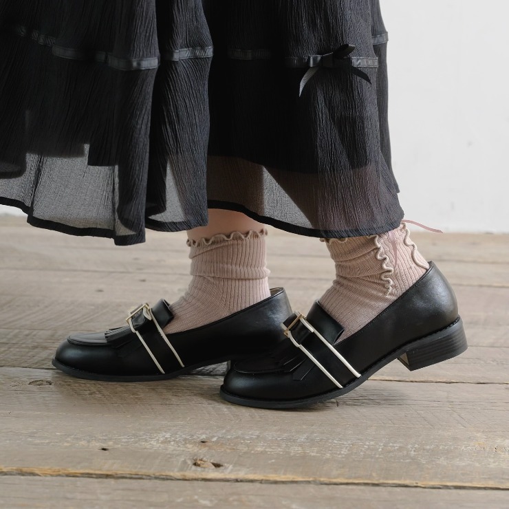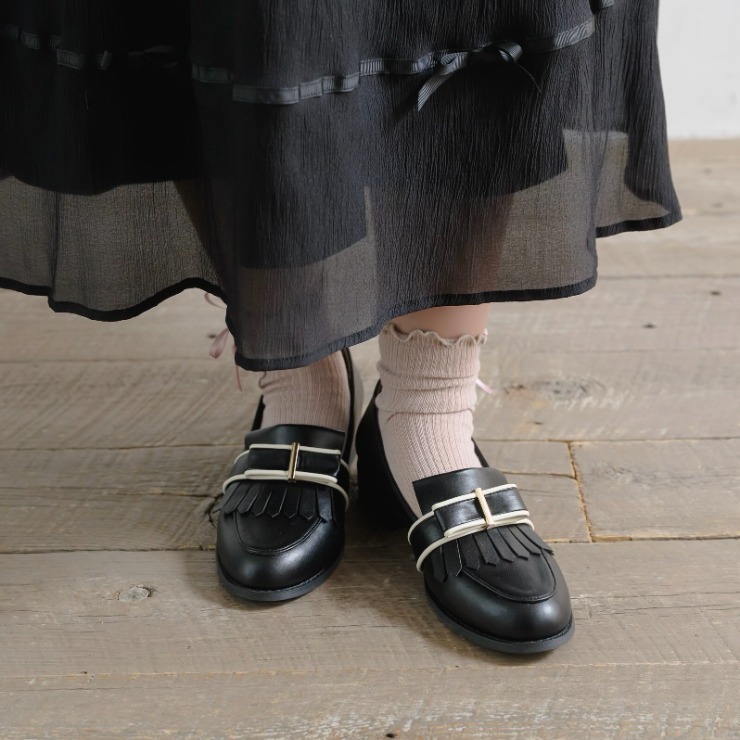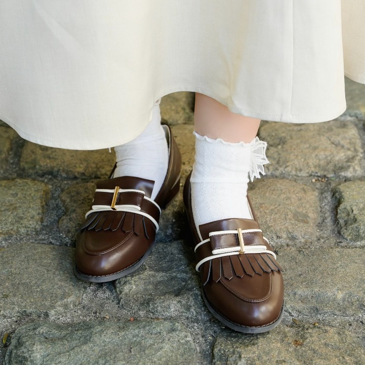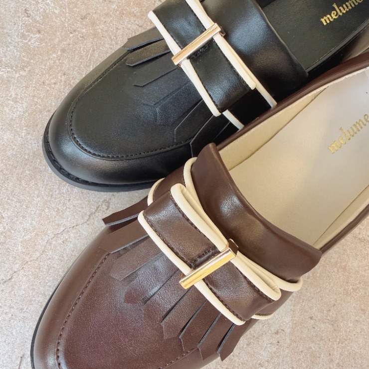 SNSでも大人気のインフルエンサー、makiさんとのコラボアイテムが登場!キルトデザインに、バイカラーリボンがポイントになったローファーです。