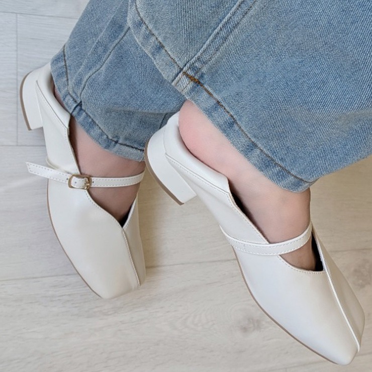 アシンメトリーデザインの切り替えが目を惹くベルトパンプスが登場。