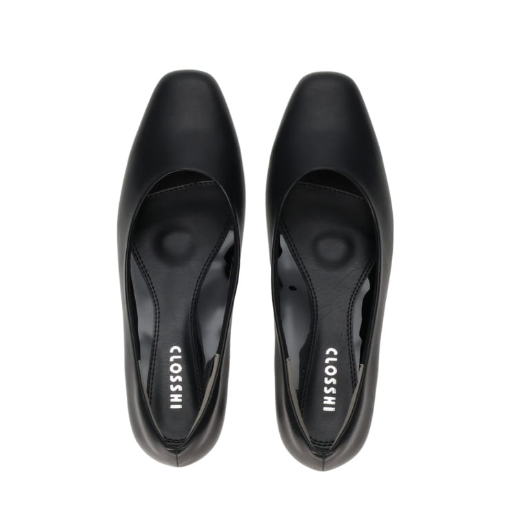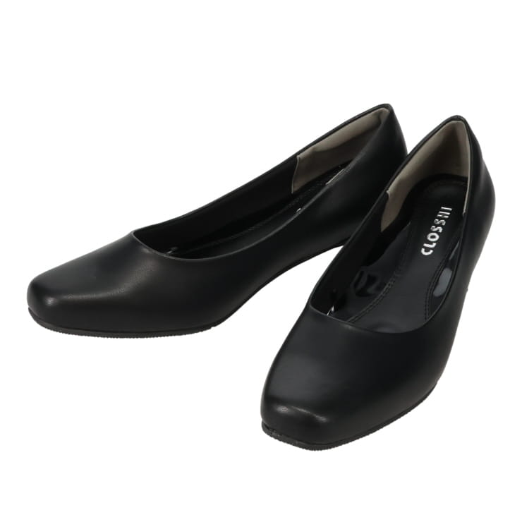 シンプルで使いやすいスクエアトゥプレーンデザインパンプス。