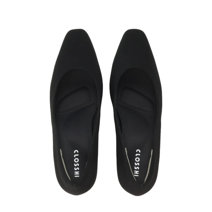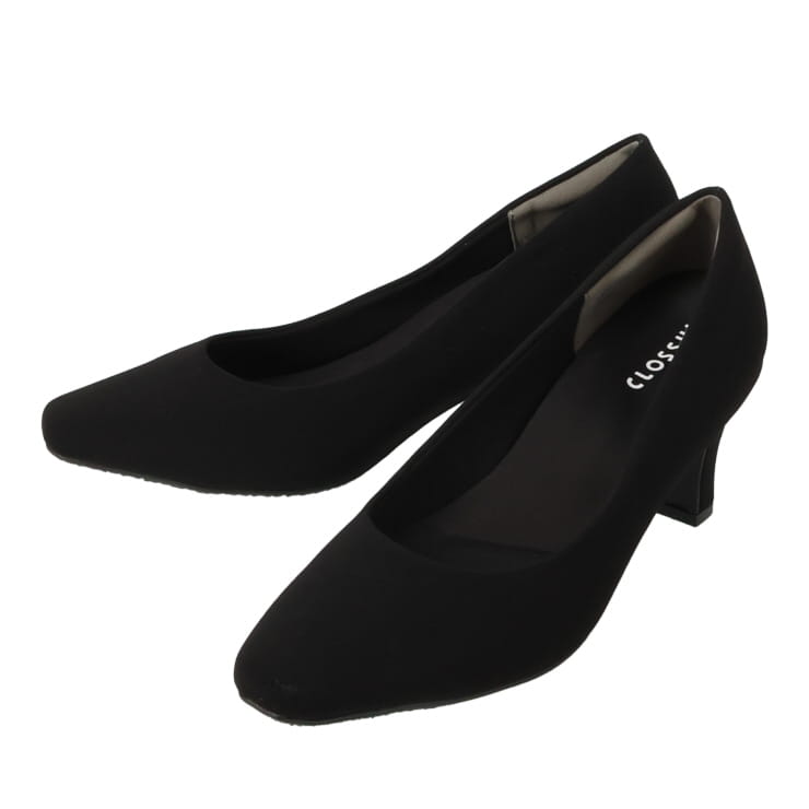 シンプルでベーシックなスクエアトゥプレーンデザインパンプス。