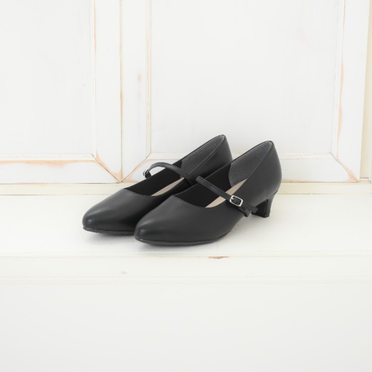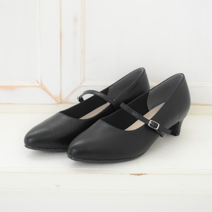 ストラップの取り外しが可能な2WAY仕様のプレーンパンプス。
