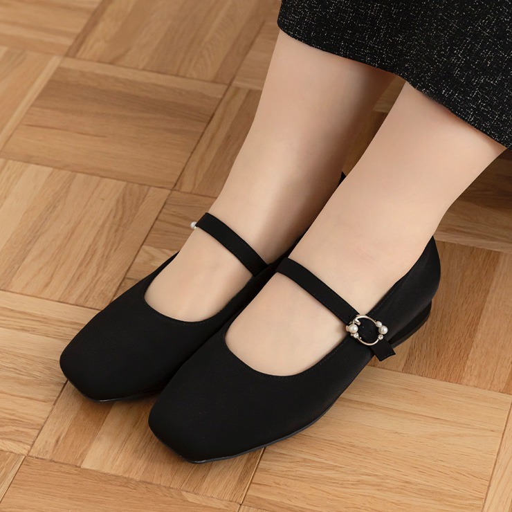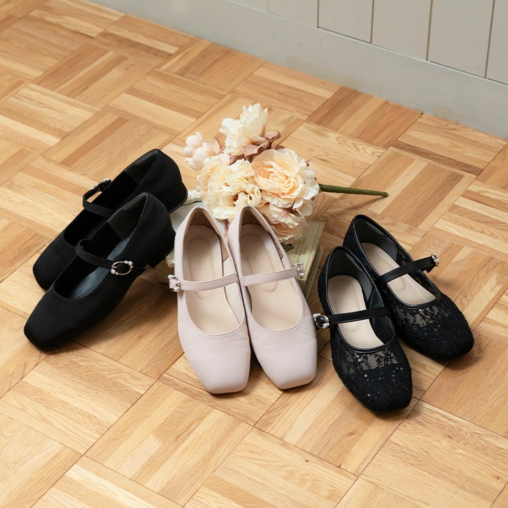 きらめくバックルが目を惹く、華やかでフェミニンなメリージェーン。