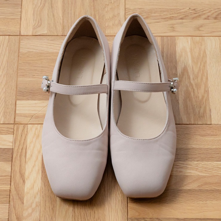トレンドのスクエアトゥで、甘さの中に大人っぽさをひとさじプラスしました。
