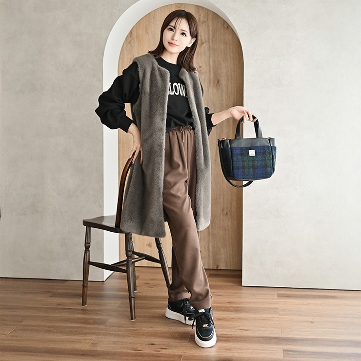 ハリスツイードのチェック柄とのコンビデザインがコーディネートのアクセントに!内側は裏起毛素材で暖かい履き心地が嬉しいポイントです。程よい厚みのあるフラットソールで安定感抜群です。