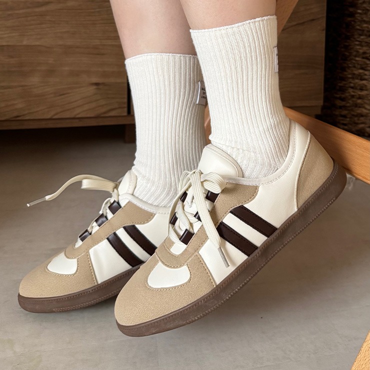薄底ソールが印象的な、クラシックな雰囲気漂うスニーカー。どんなスタイルにもなじむベーシックなカラーで、カジュアルからきれいめまで幅広いコーディネートにマッチします。軽やかな履き心地で長時間歩いても疲れにくく、デイリー使いはもちろん、お出かけや旅行などアクティブなシーンにもぴったりの一足です。