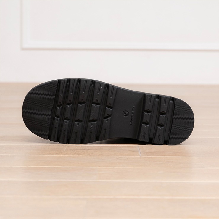 ボリュームのあるソールが存在感をプラスし、安定感のある履き心地を提供。