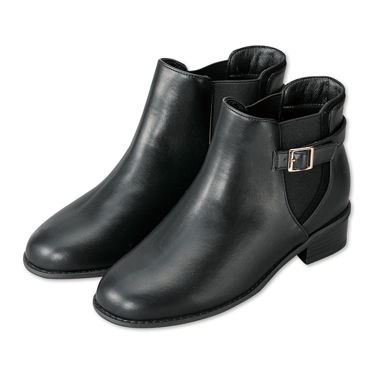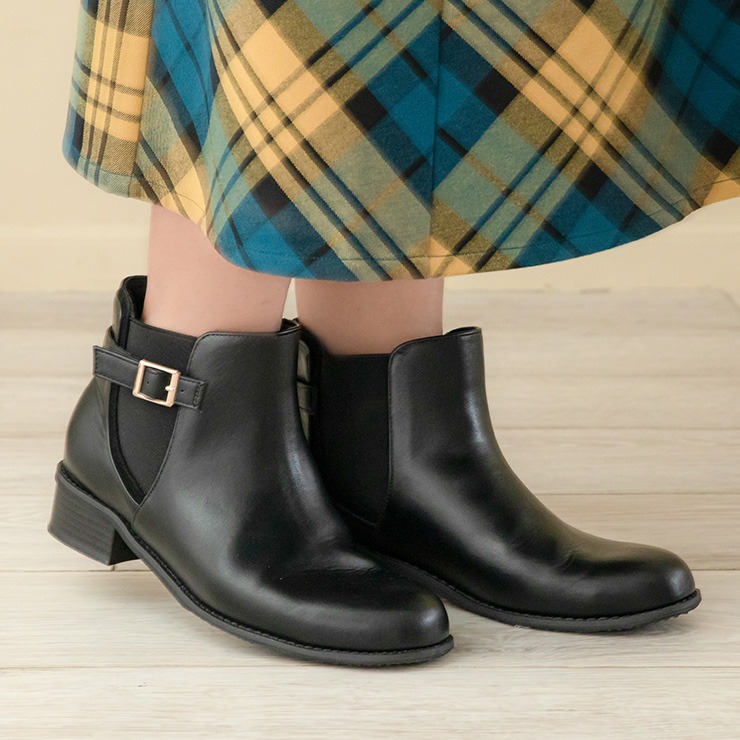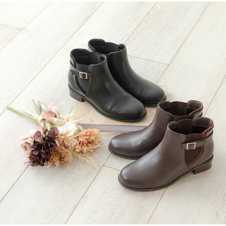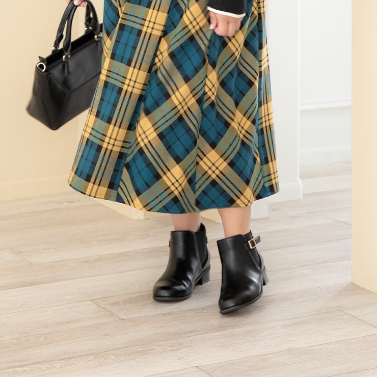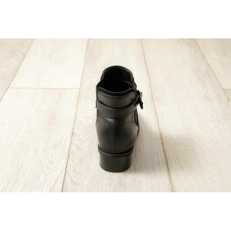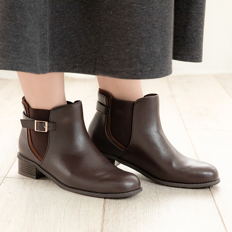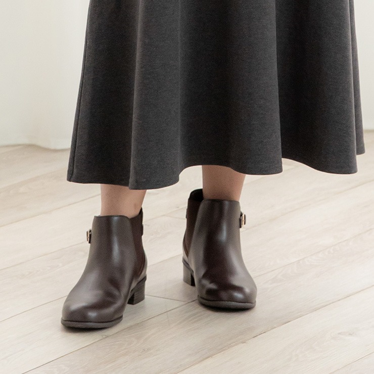 SNSで人気のインフルエンサー、Hinaさんコラボ商品が登場!サイドベルトがアクセントになったブーツのご紹介です。履き口が広めに設計されており、脱ぎ履きがしやすいのが魅力。ゆとりのある設計なので、甲高・幅広の方にもゆったりと履いていただける仕様です。太めで安定感のあるヒールはほどよい高さで歩きやすく、長時間の着用でも疲れにくい一足です。