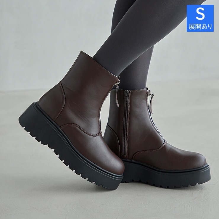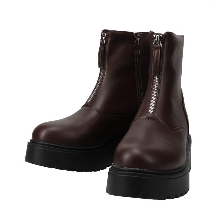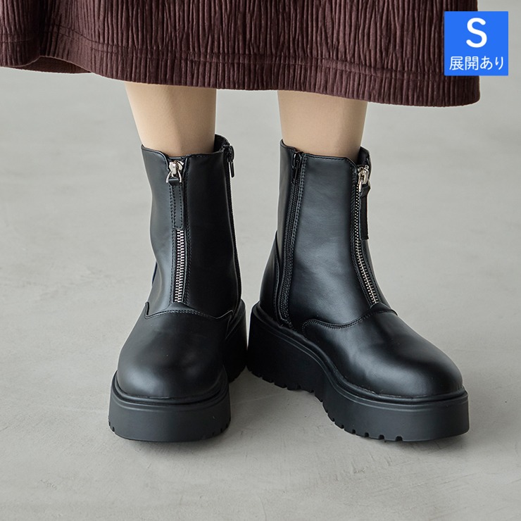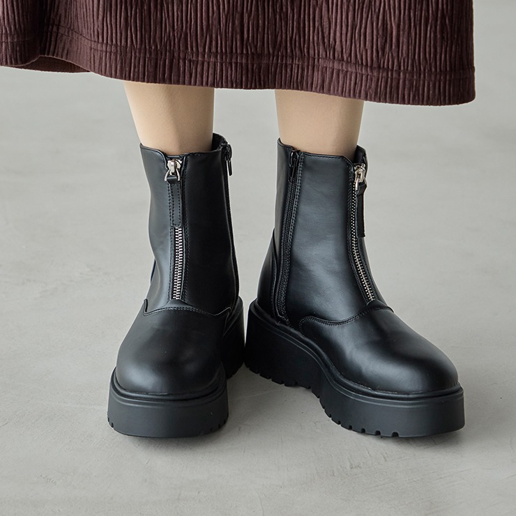 センターに配置された飾りファスナーが目を引く、モード感漂うショートブーツのご紹介です。