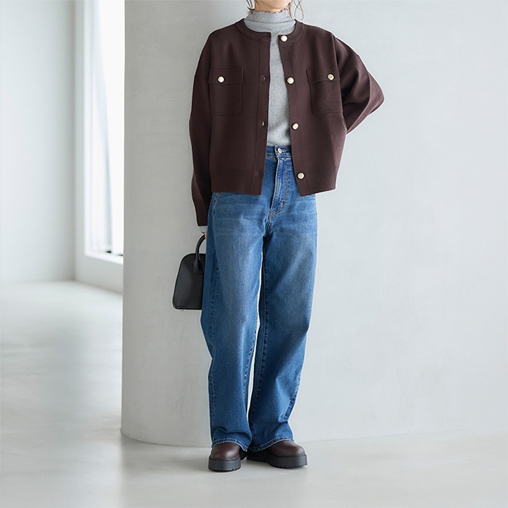 シンプルながらもシャープな印象で、カジュアルからキレイめまで幅広いスタイリングにマッチするアイテムです。