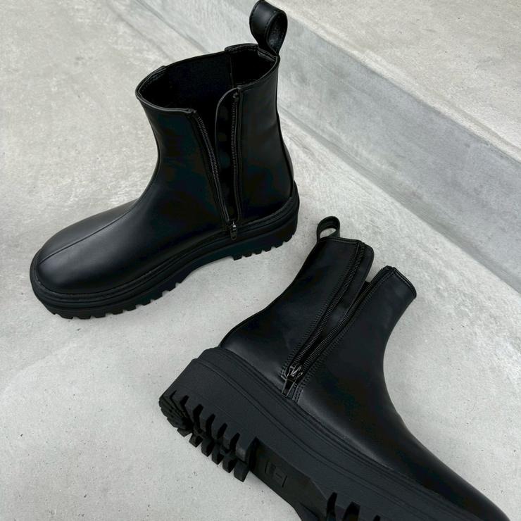 一方はサイドゴア、もう一方は内側ファスナー付きで、デザイン性と実用性を兼ね備えたアイテムです!