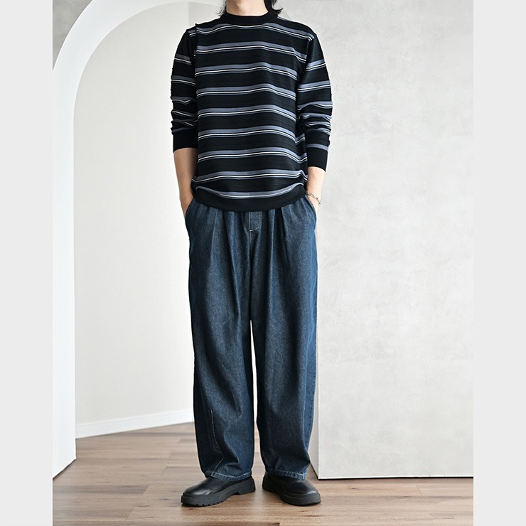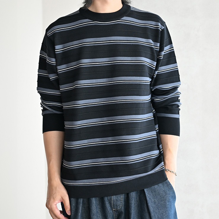 表面感のあるボーダー柄がポイントのニットプルオーバー!