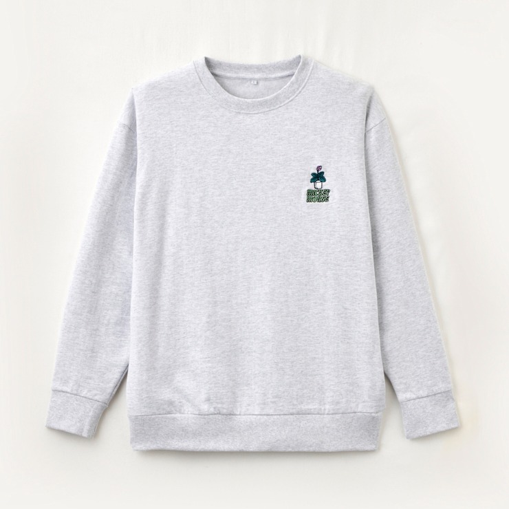 バックのロゴ部分がサガラ刺繍になったトレーナー