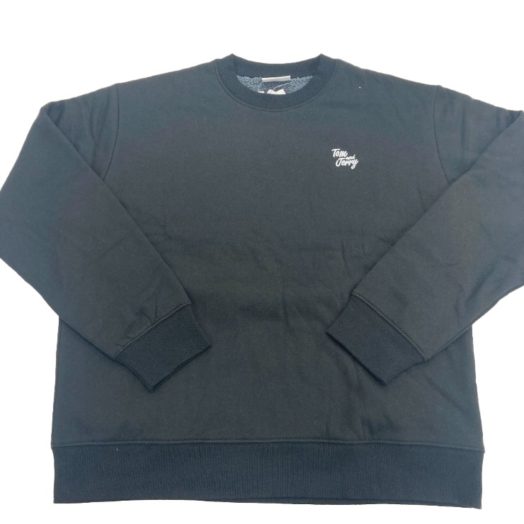 深みのあるブラックカラーのボディは、身頃部分が心地よいボア素材で、肌寒い季節にぴったりの暖かさと快適さを提供します。フロントには、控えめに「Tom and Jerry」のロゴが白文字でプリントされ、さりげないアクセントになっています。