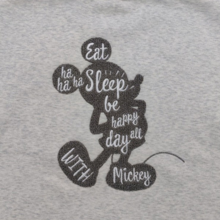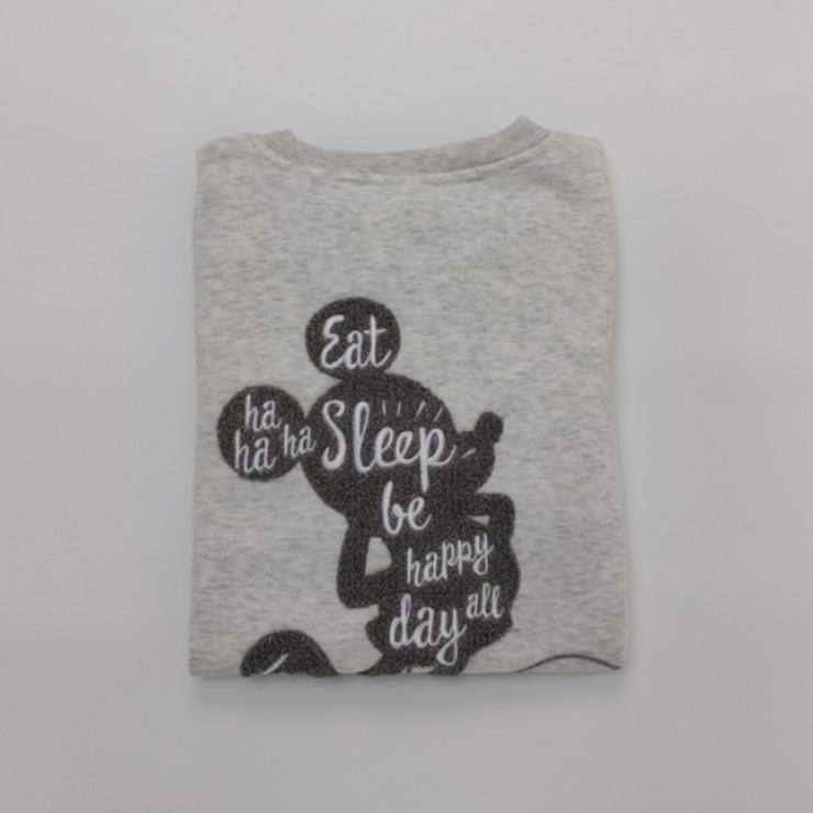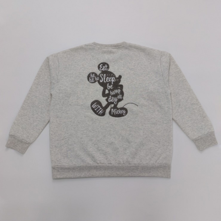 ラメ糸を混ぜたミッキーサガラ刺繍の裏起毛トレーナーです。