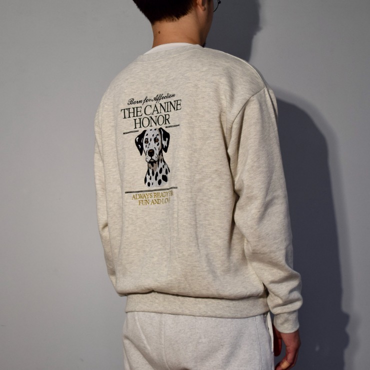 ダルメシアン刺繍が目を惹く、ゆるっと可愛い裏起毛スウェット。