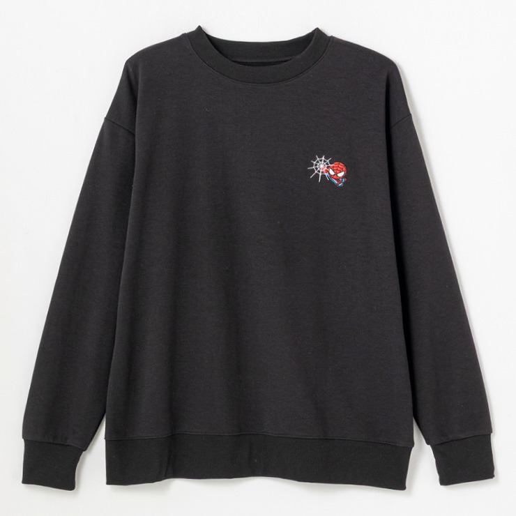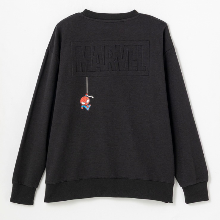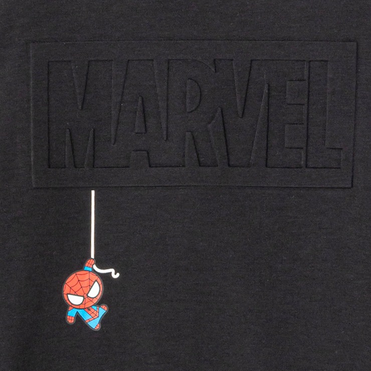 MARVELロゴを同色見えするエンボスで表現したトレーナー
