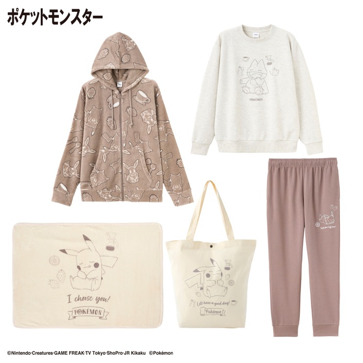 TVアニメ「ポケットモンスター」のトレーナー・ジップパーカ・ロングパンツ・トートバッグ・ブランケットが入った5点セットです。