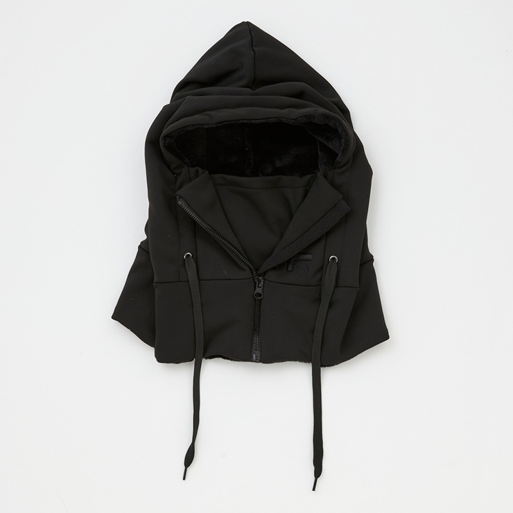 首元から頭までしっかり防寒できる、機能性抜群のフード付きネックウォーマー。前面のジッパー仕様により着脱もスムーズで、取り外し可能なマウスガードも付属しています。ジャージー素材で着心地も快適です。