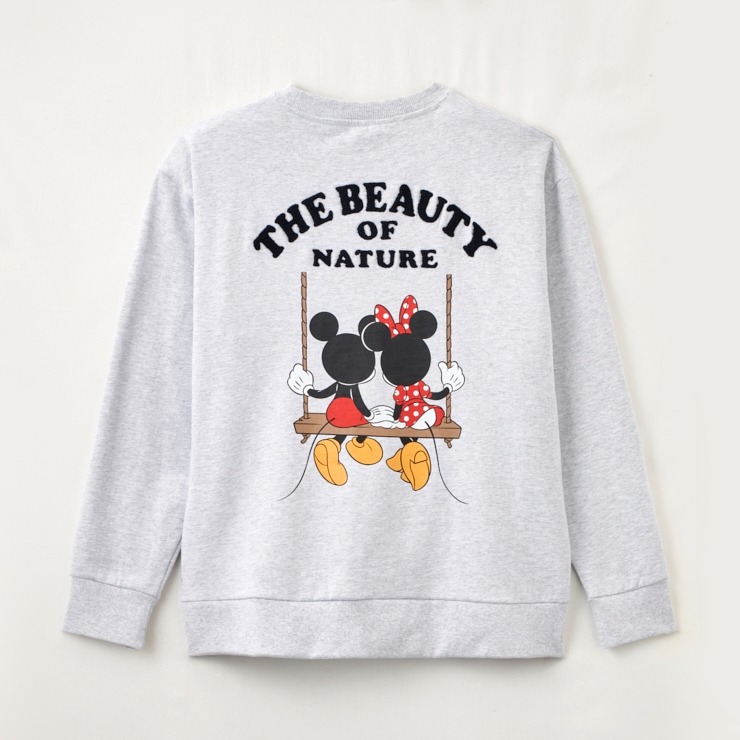 バックのロゴ部分がサガラ刺繍になったトレーナー