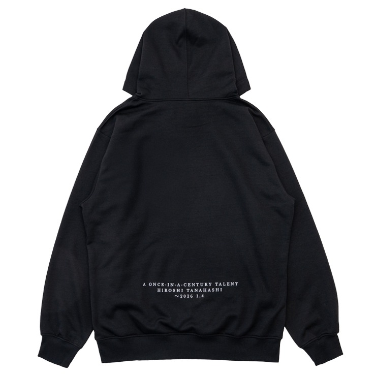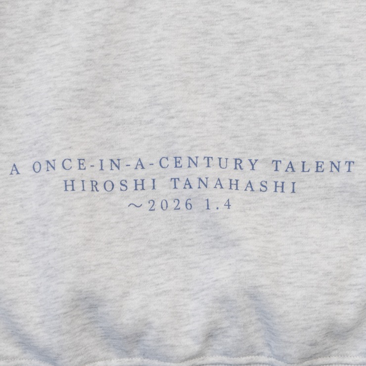 「100年に1人の逸材」-棚橋弘至選手引退イヤー企画!登場シーンのフォトデザインを2色のボックスロゴで彩ったお洒落な1着!2026年1月4日に引退を迎える棚橋選手に最大限のリスペクトと感謝を込めた当企画限定のオリジナルデザインです!裏起毛素材でふっくら暖かな着心地です♪棚橋選手本人着用のアクリルチャーム付キーホルダー付!