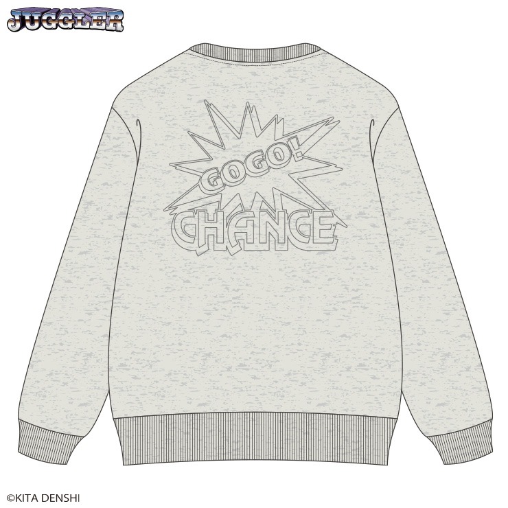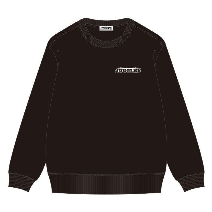 大人気!パチスロ「JUGGLER」のトレーナーが登場!前身の定番のロゴワンポイントは刺繍、後身はインパクトのあるエンボスでデザイン。ここでしか買えないコラボアイテムです!