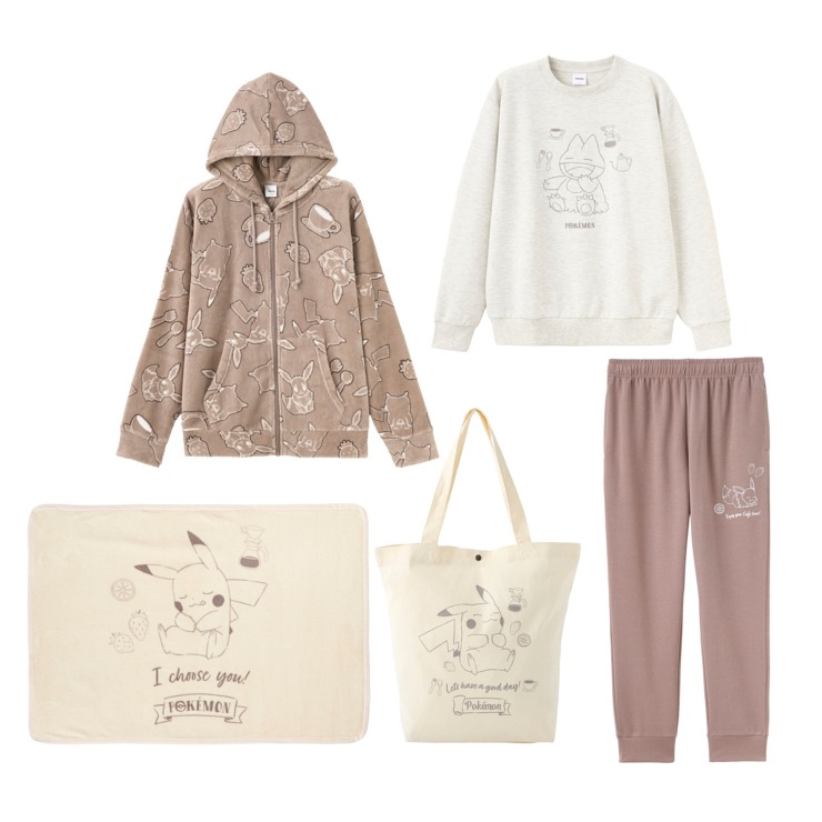 TVアニメ「ポケットモンスター」のトレーナー・ジップパーカ・ロングパンツ・トートバッグ・ブランケットが入った5点セットです。